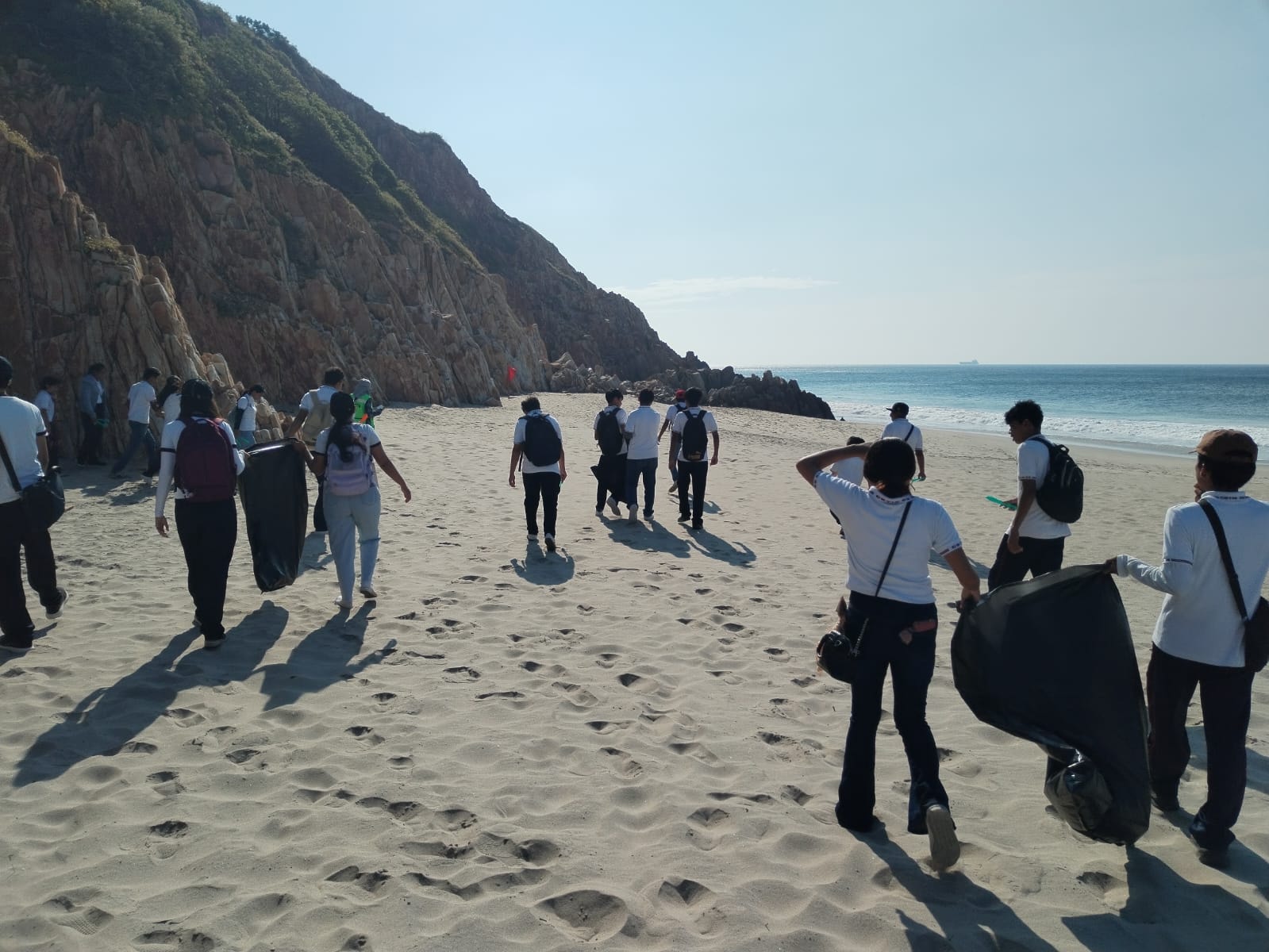 Posteriormente se procede a organizar las brigadas (de acuerdo al número de alumnos y profesores) para distribuirse con el personal de la Dirección de Ecología, a lo largo y ancho de la playa, marcando los tiempos de limpieza, para proceder con la clasificación y el análisis residual.